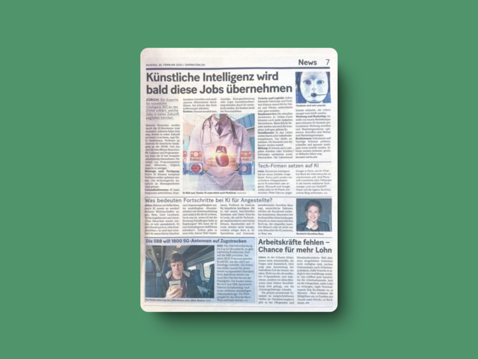 Die Zeitungsseite im Print bedient leider bestehende Ängste rund um KI und Jobs. Ausserdem widersprechen die Aussagen von Gerd Leonhard und mir sowie auch der Artikel rechts unten auf dem Bild der Titelgeschichte.